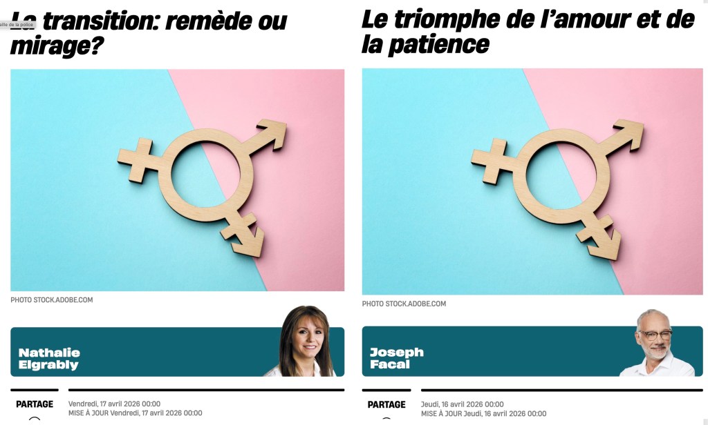 Précision importante : ce texte ne vise pas à juger les parents qui ont choisi de soutenir une transition de leur enfant. Ils ont toute mon admiration et mon respect. Je cherche plutôt à mettre en lumière les forces sociales, scolaires, médicales et légales qui pèsent sur ces décisions. À la lumière des témoignages, il devient toutefois difficile de taire à quel point l’école et le système de santé québécois, malgré leurs démentis, trahissent leur mission éducative et médicale en orientant les familles, surtout dans une seule direction : l’approche transaffirmative ou d’affirmation de genre [6].